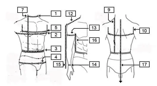 - Desired product length. Measure the same size in front from the collarbone to the bottom.