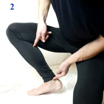 - From the point under the knee to the bend of the foot